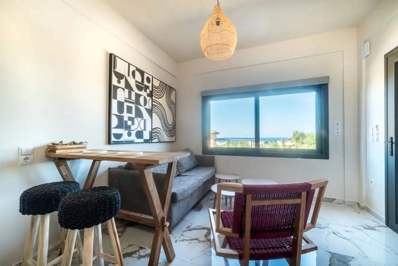 Η Sunset Suite σάς υποδέχεται με θέα που μαγνητίζει. Βρίσκεται ακριβώς πάνω από την πισίνα και προσφέρει ένα φωτεινό και άνετο περιβάλλον, ιδανικό για ρομαντικές αποδράσεις ή οικογενειακές διακοπές. Ο ιδιωτικός της χαρακτήρας, σε συνδυασμό με την εκπληκτική θέα, δημιουργεί μια αξέχαστη εμπειρία φιλοξενίας.