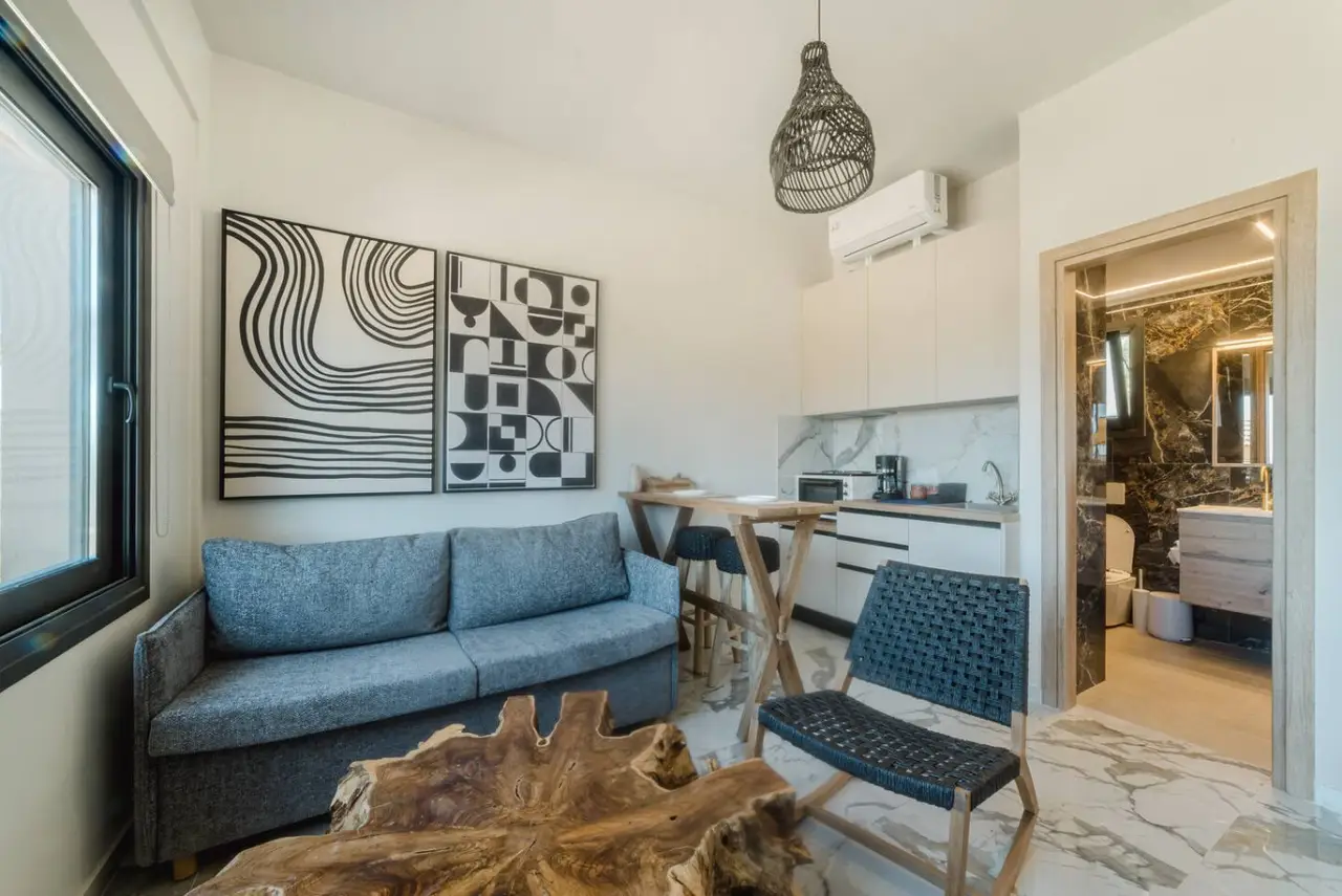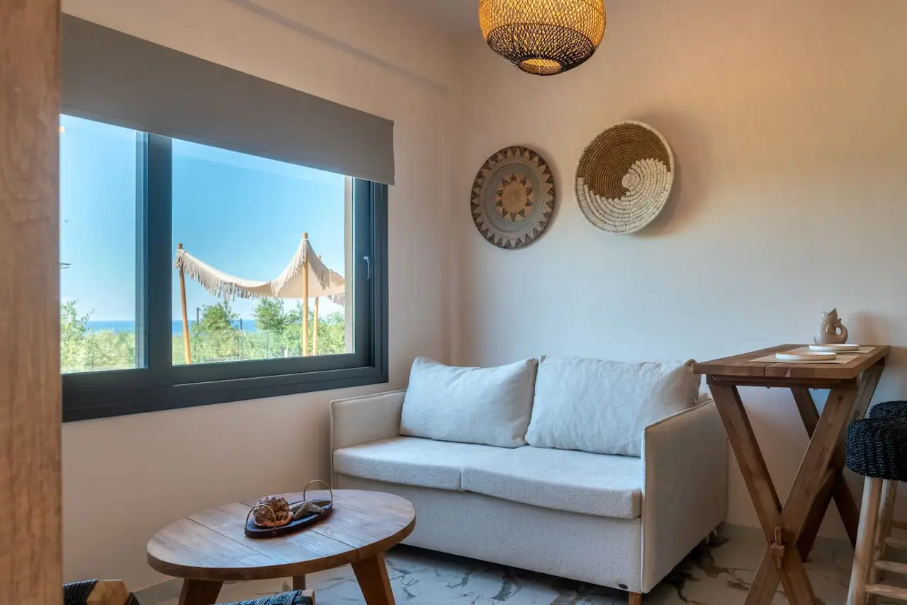 Η Olive Suite συνδυάζει φυσικό φως και minimal πολυτέλεια, δημιουργώντας το ιδανικό περιβάλλον για ξεκούραση. Με ευρύχωρο υπνοδωμάτιο, κουζίνα και άμεση πρόσβαση στους εξωτερικούς χώρους, αποτελεί ένα ήσυχο καταφύγιο για όσους θέλουν να χαλαρώσουν δίπλα στη φύση και να απολαύσουν στιγμές γαλήνης.